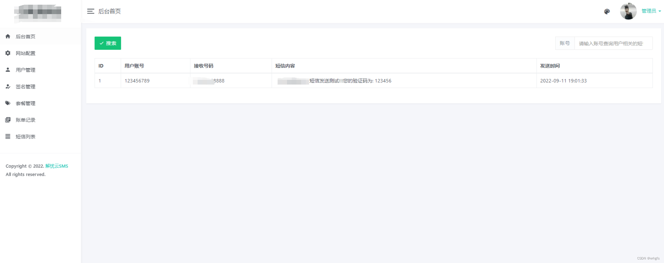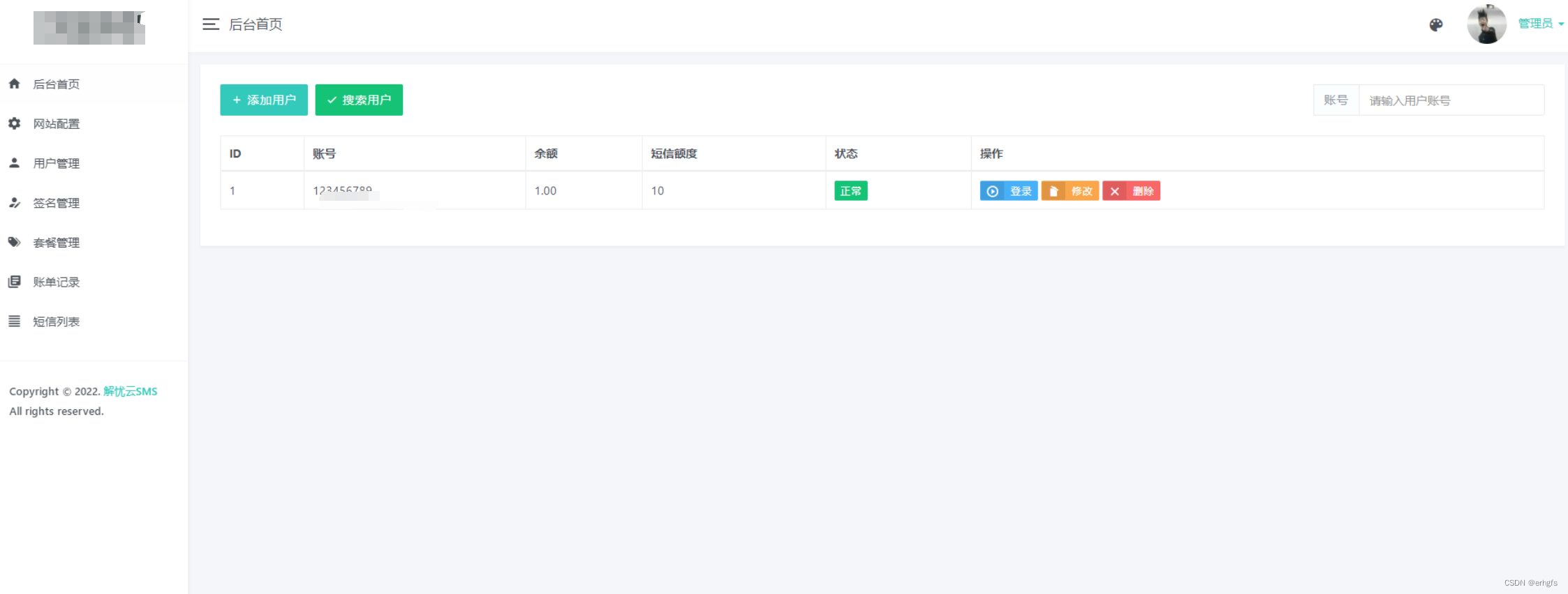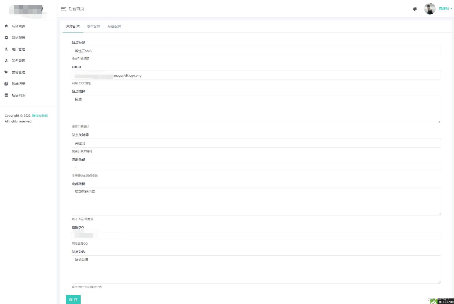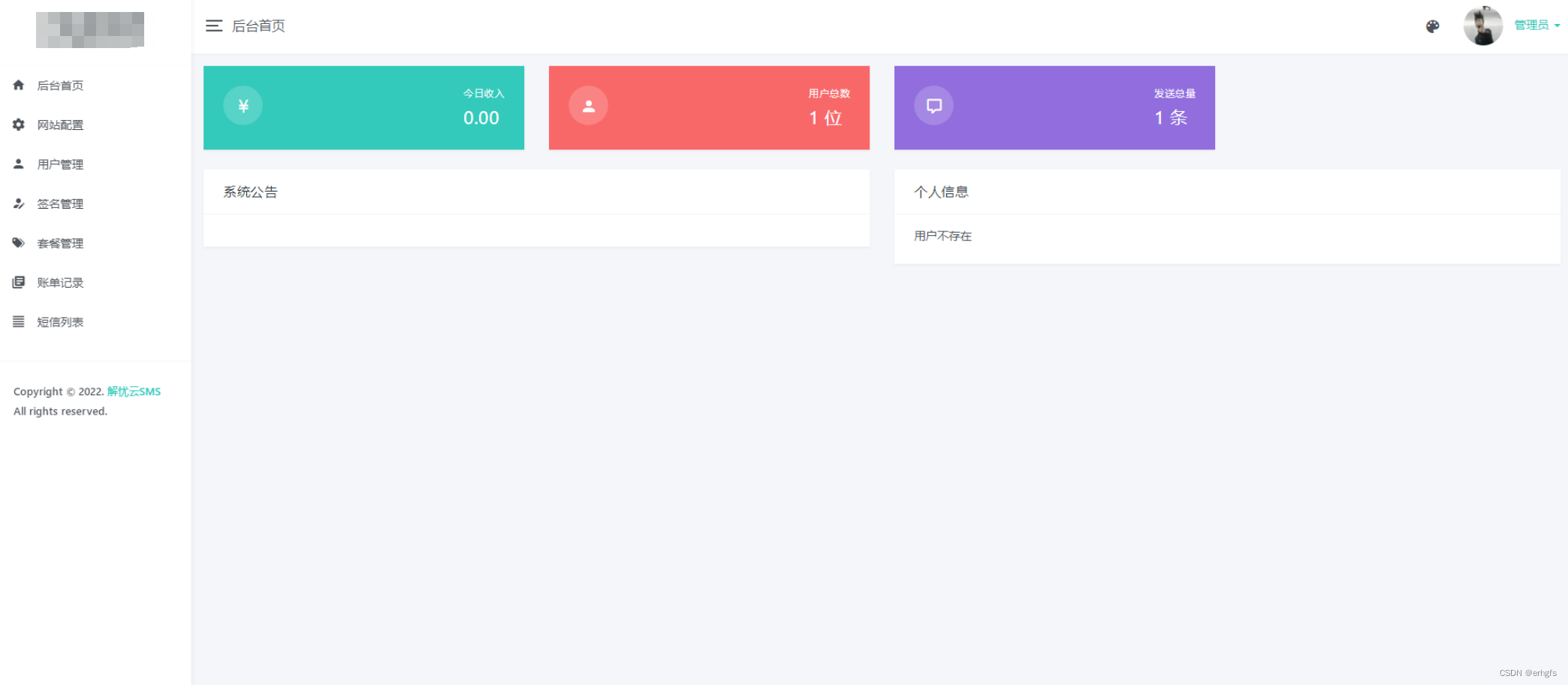 解忧云SMS短信服务平台系统,短信发送系统,全解密完美版,经过一系列修复现在程序已经可以完全使用。