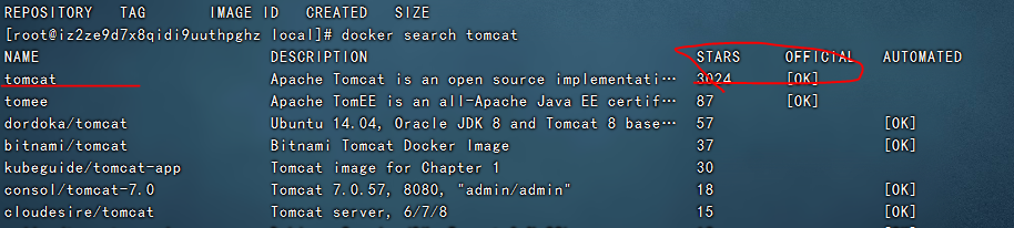 eg:docker search tomcat