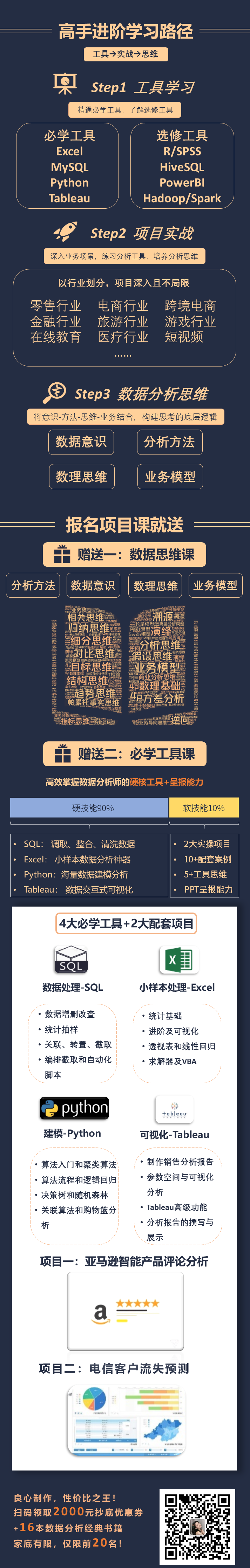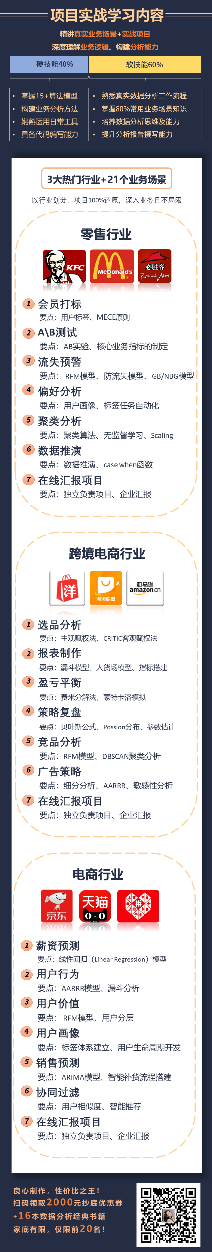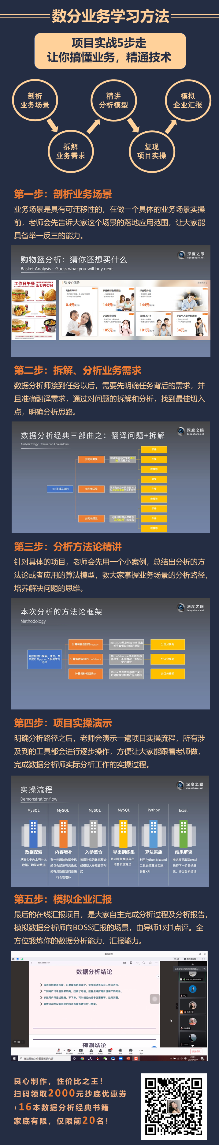 别慌,我最近做数据分析行情调研,发现了一个挺小众但还算良心的业务课程。跟市面上“变着法教数据分析工具”不同,他们的项目是以“如何用数据分析解决业务问题”为核心,从项目背景-分析模型-实操演示讲具体业务场景。真实数据分析工作确实需要这样的分析流程。