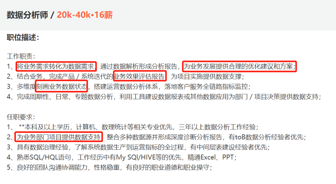 现在知道为什么明明excel、sql、python都会的你,还是找不到数据分析师的工作了吧。不过我也理解,因为现实情况是:没有就职的外行人,根本接触不到业务相关,更别说从数据角度去支持业务了。