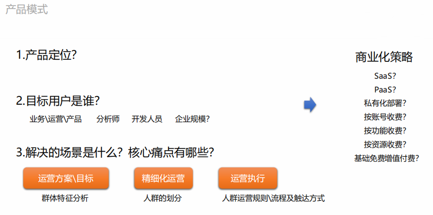对这些问题的思考,就是在规划一款数据产品时,必须要确定的产品模式,也是数据产品的核心模块之一。