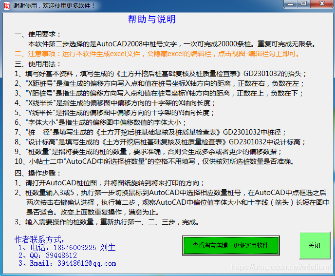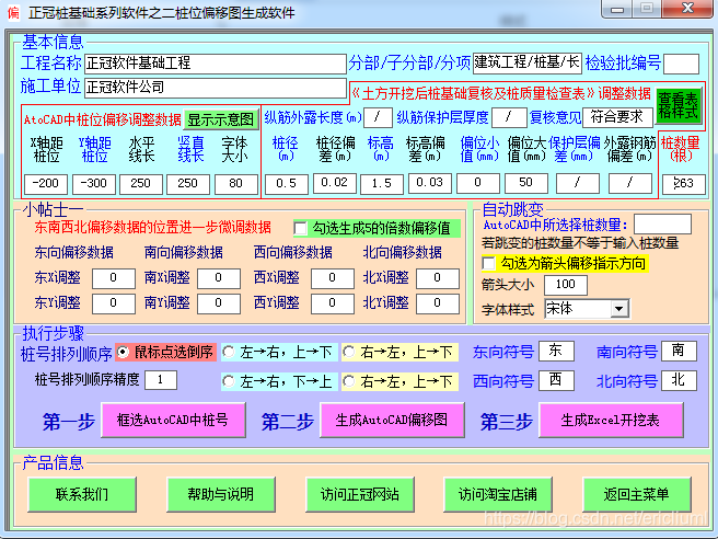 调整相关数据,依次点击按钮:第一步“框选AutoCAD中桩号”,鼠标点击AutoCAD图纸,鼠标框选需要编写的桩号图形,第二步“生成AutoCAD偏移图”,第三步“生成Excel开挖表”,就生成了《土方开挖后桩基础复核及桩质量检查表》。