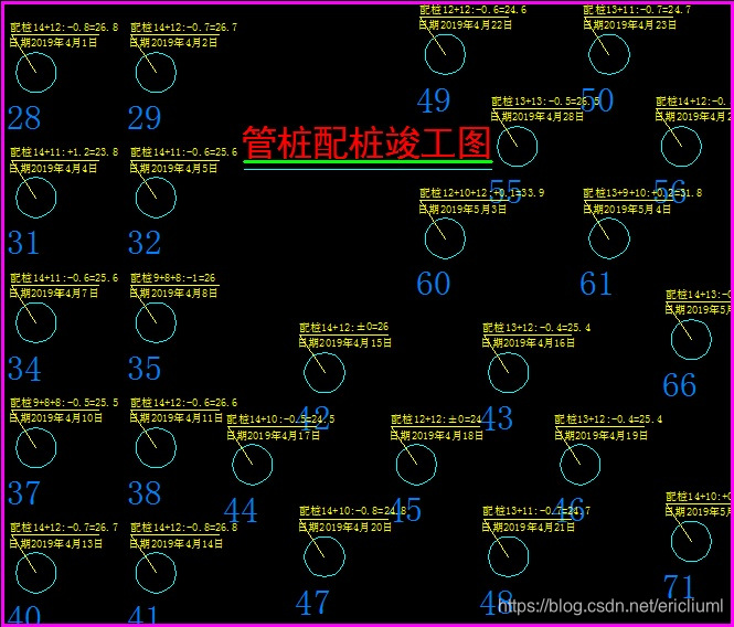 - 点击“第四步生成管桩竣工图”,鼠标切换到AutoCAD中随便左键点击图中空白处,即可生成竣工图。