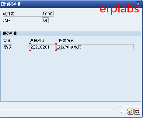 输入MWS税收百分比17,表示17%税率,点“税务科目”按钮,显示如下界面