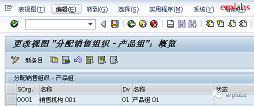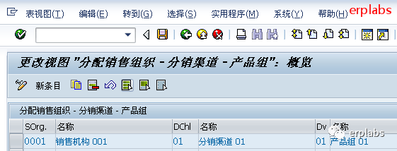 如上图示,输入销售组织、销售渠道、产品组的组合,保存。