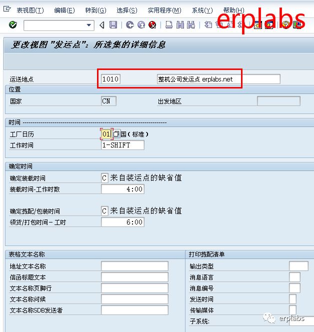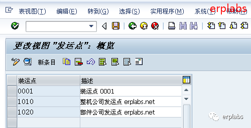 输入运送地点1010整机公司发运点,保存。1020发运点相同操作,如下图示