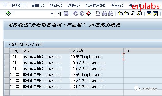 输入销售组织1010对应00、10、12产品组,1020对应00、10、12产品组,保存。