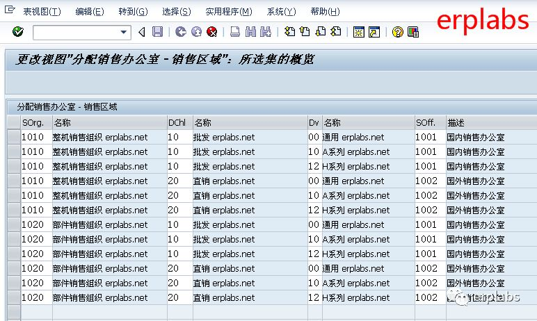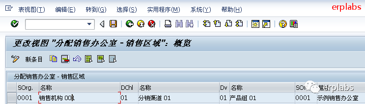 说明:为销售组织、销售渠道、产品组的组合分配销售办公室。
