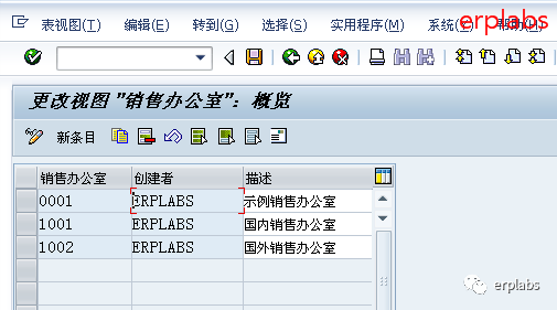本案例设置二个销售办公室,1001国内办公室、1002国外办公室,保存。