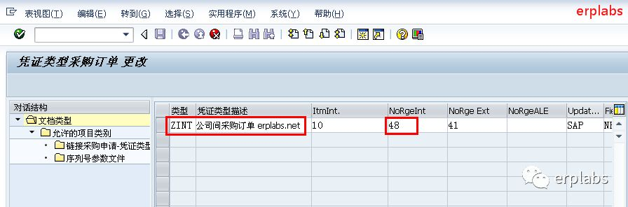 输入类型ZINT公司间采购订单,NoRgeInt编号范围输入48,保存。