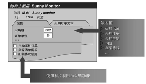 存储在物料主记录中的数据可用于各个方面,其中包括:订购时所需的采购数据,过帐货物移动和执行,存盘点时所需的库存管理数据,物料评估所需的会计核算数据,物料需求计划所需的物料计划数据。