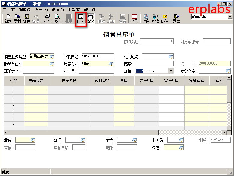 路径:供应链-销售管理-销售出库-销售出库单-新增