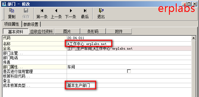 如上图新增工作中心,所属部门选择对应基本生产部门。
