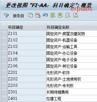 路径:SPRO->财务会计->资产会计核算->组织结构->资产类->指定帐户确定