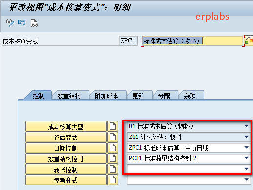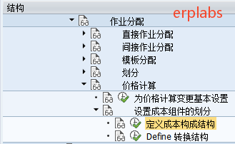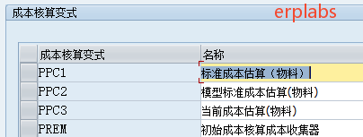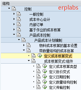 路径:SPRO->控制->产品成本控制->产品成本计划编制->带数量结构的成本估算->成本核算变式:组件->定义成本核算变式