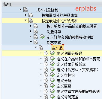 路径:SPRO->控制->产品成本控制->成本对戏控制->按定单划分的产品成本->期末结算->在产品->定义利润分析码