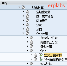 路径:SPRO->控制->成本中心会计->实际过账->期末结算->作业分配->定义分割结构