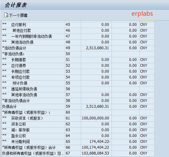 资产负债表,未分配利润负数表示利润,正数表示亏损。