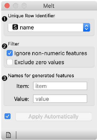 Melt 组件接收常见的宽格式数据集,并输出由 (行ID, 变量, 值) 三元组组成的窄数据表。