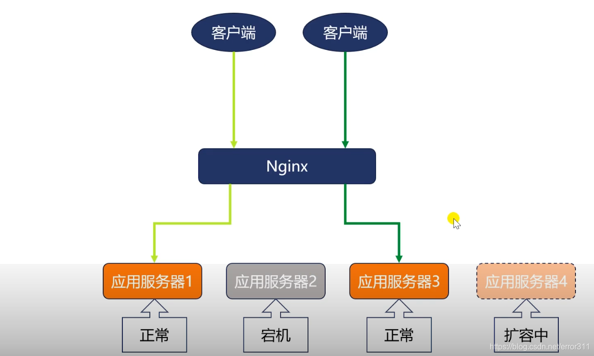 语法:server address[parameters](每个server就是一台服务器,参数用来控制负载均衡的行为。address可以是域名,ip地址或者unix socket。可以在后面加端口,不加默认80)(两个通用参数:backup:指定当前server为备份服务,仅当非备份server不可用时,请求才会转发到该server。down:标识某台服务已经下线)