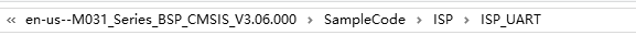 新唐官方网站下载对应的BSP,ISP_Uart接口路径一般为xxx->BSP->SampleCode->ISP->ISP_UART ,该工程Uart波特率默认115200bps