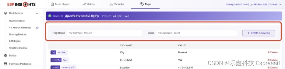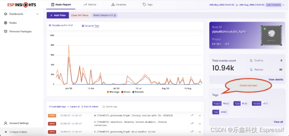 欢迎前往 ESP Insights Dashboard 了解更多信息,玩转 ESP Insights 设备标签!