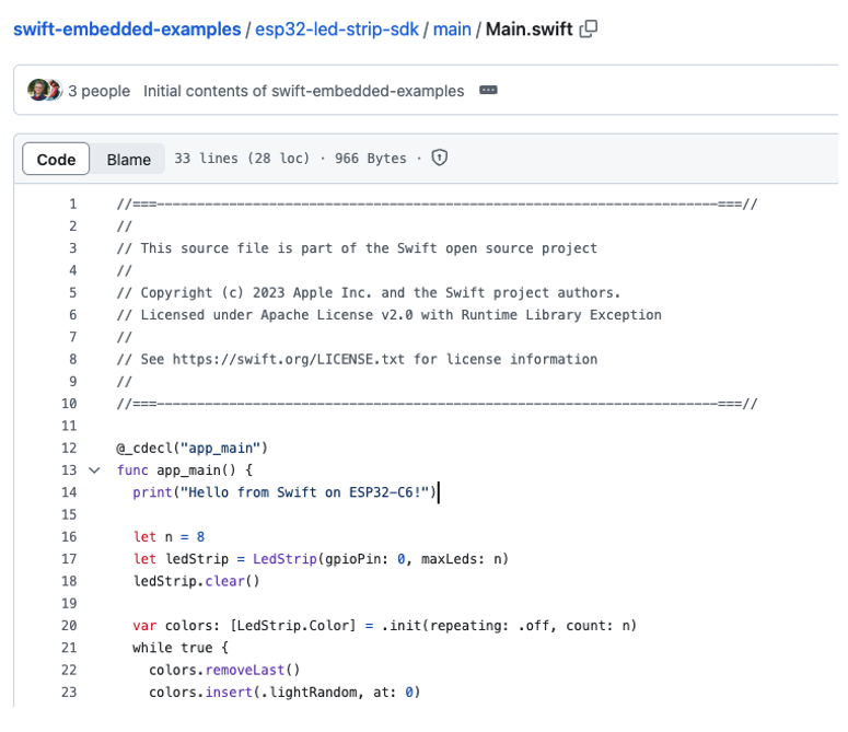 如果开发者想要从更简单的示例开始,苹果还提供了一个基于 ESP32-C6 的 LED 灯带开发示例。它展示了 Embedded Swift 在控制简单设备方面的能力,为开发者提供了一个入门级的实践平台。