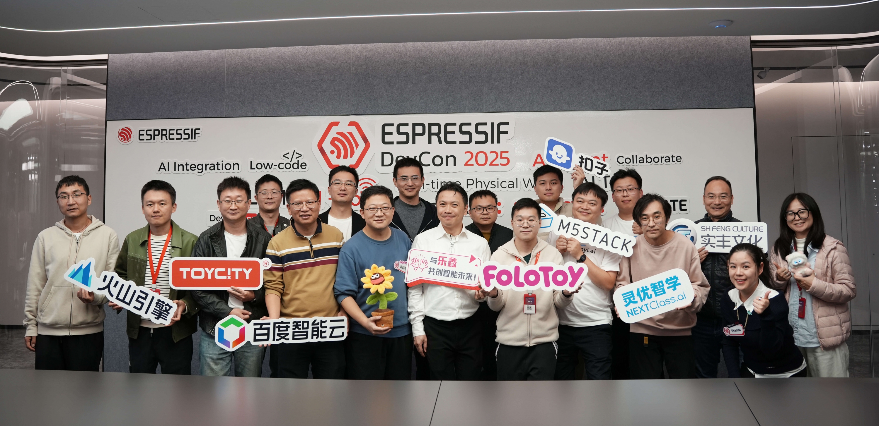 除乐鑫技术团队带来的体系化分享之外,火山引擎、扣子、百度智能云、ToyCity、灵优智学、实丰文化、Babycare、LiveKit、FoloToy、十方融海小智 AI 以及 M5Stack 等生态伙伴也齐聚乐鑫上海新研发总部,围绕 AI Agent、多模态交互、AI 玩具创新与开源硬件生态等主题展开交流。各家公司基于乐鑫 ESP 平台带来了最新实践成果:从智能玩具与潮玩终端,到多模态交互框架与云端智能体,再到低门槛的可视化开发工具与组件生态,让“AI + IoT”的应用想象被进一步推向规模化落地与量产实施的现实边界。