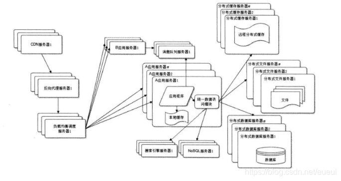 NoSQL和搜索引擎:源自互联网的技术手段,对可伸缩的分布式特性具有更好的支持。应用服务器则通过一个统一数据访问模块访问各种数据,减轻应用程序管理诸多数据源的麻烦。