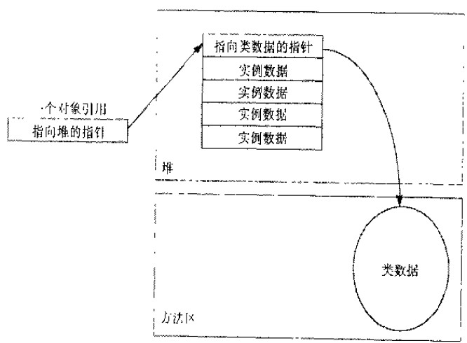 堆:java程序在运行时创建的所有类的实例或数组都放在堆中,虚拟机并没有要求java对象在堆中是如何表示的,但必须能够通过对象得到类的数据: