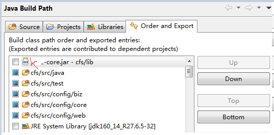 那为什么一开始Eclispe里面Junit是可以执行成功的呢?原因是因为所引用的那个错误的jar位于所测试的类的后面,后来我把用jar调到最上面位置,发现确实是这个原因