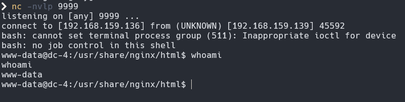 这里我们也是成功反弹shell 拿到了www-data用户权限