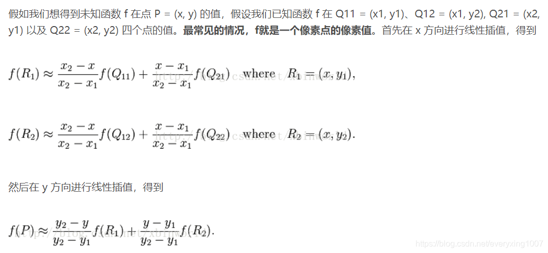 在FCN中upsampling的时候会用到双线性插值,双线性插值实际上是一个非常基础的图像resize的手段