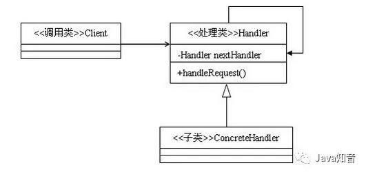 责任链模式的类图非常简单,它由一个抽象地处理类和它的一组实现类组成: