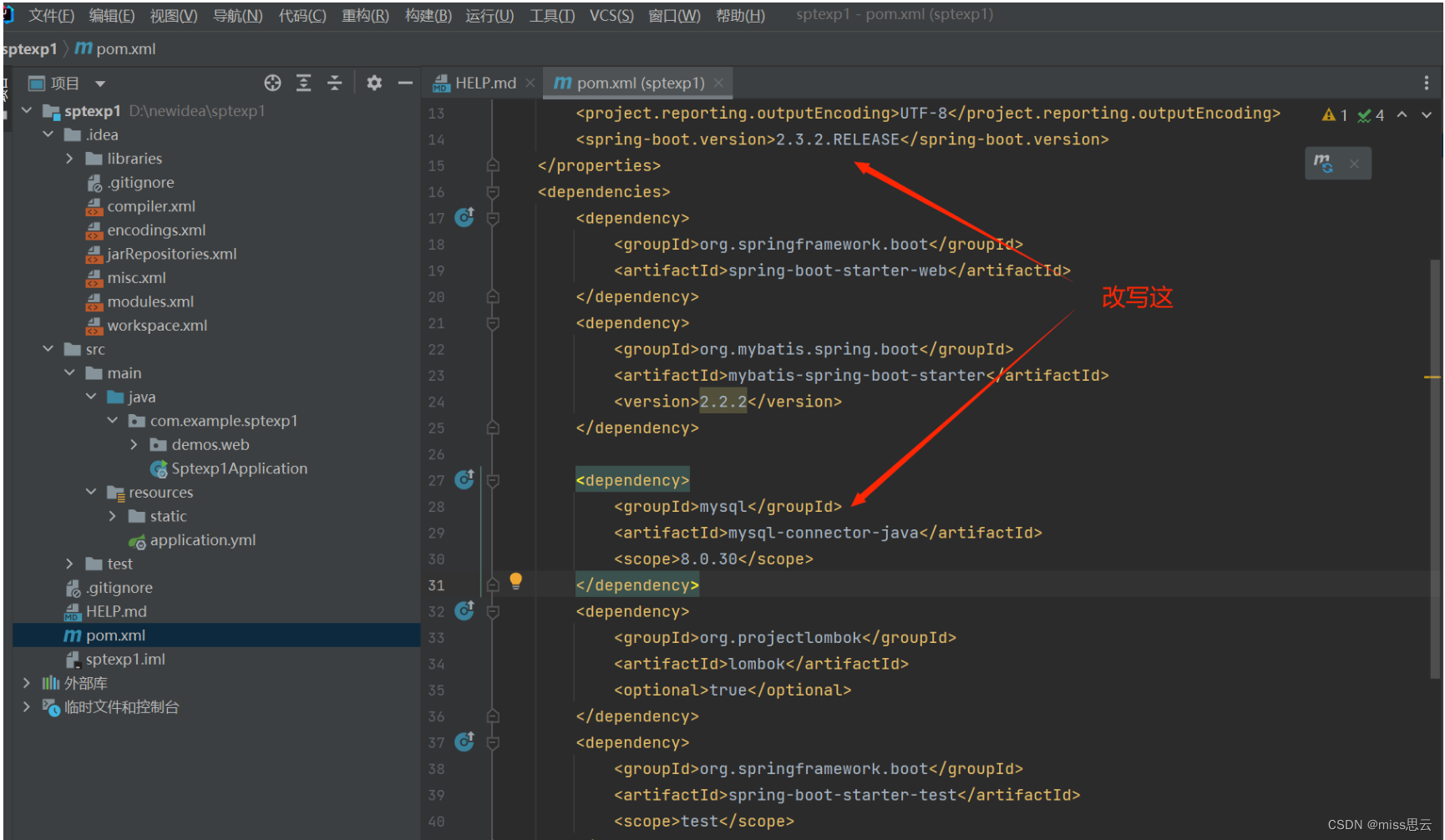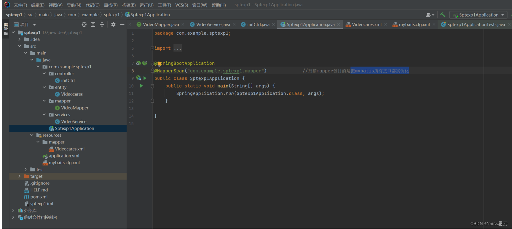 3.类的方法上@RequestMapping (“/网页访问名") 5.修改启动主类5.修改启动主类 1.在类头上@MapperScan( "mapper接口的包全路径")