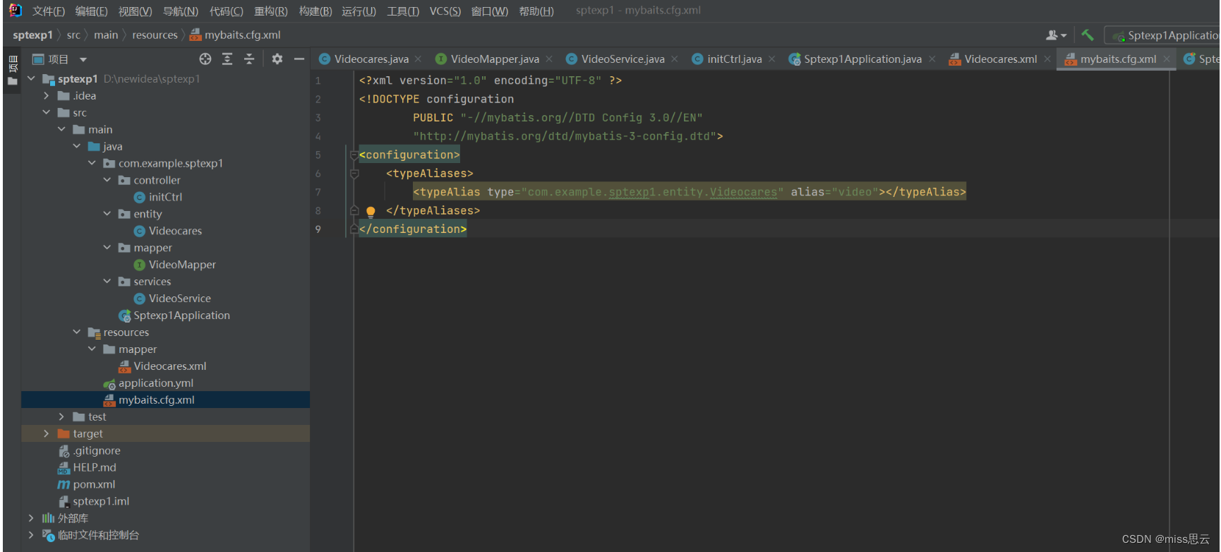 6.写mybatis.cfg.xml--->resources文件夹下6.写mybatis.cfg.xml->资源文件夹下 1.给实体类起别名1.给实体类起别名