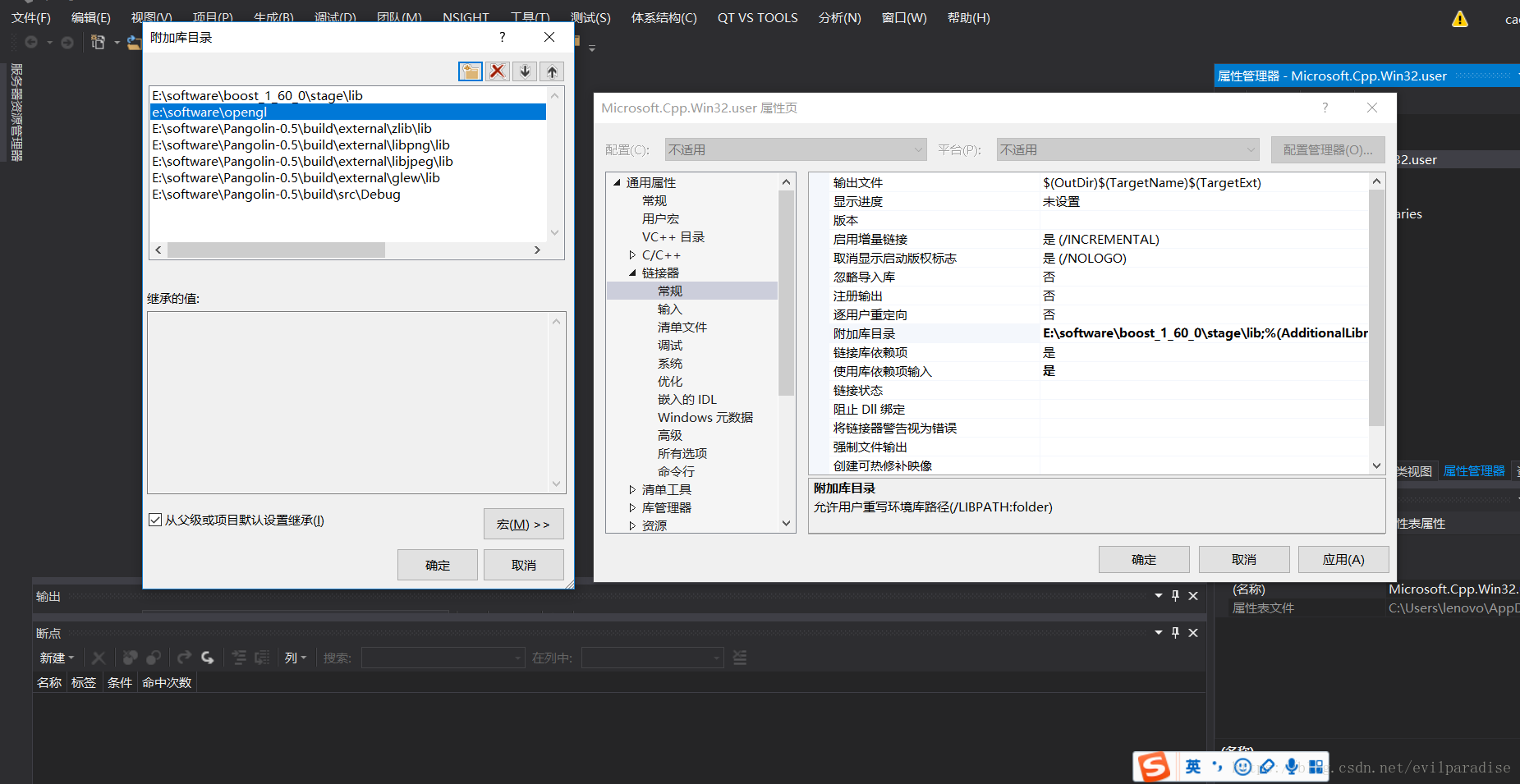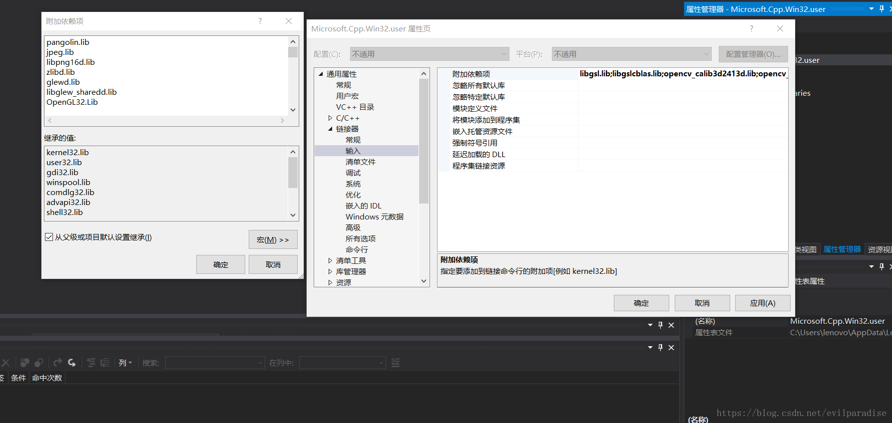 5view-otherwindows-property manager-Debug| X64→Microsoft.Cpp.x64.user