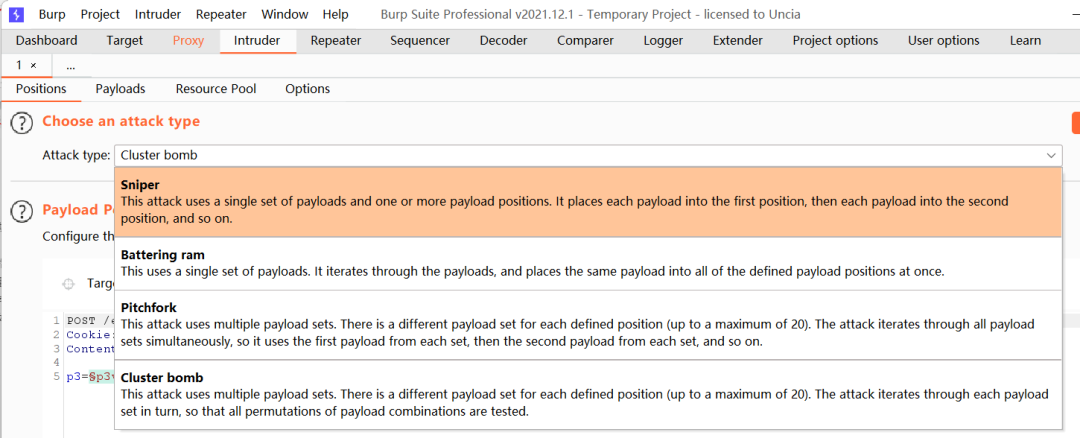 Cluster bomb:将每个字典逐一交叉匹配,例如A字典的所有位与B字典的所有位都匹配,
