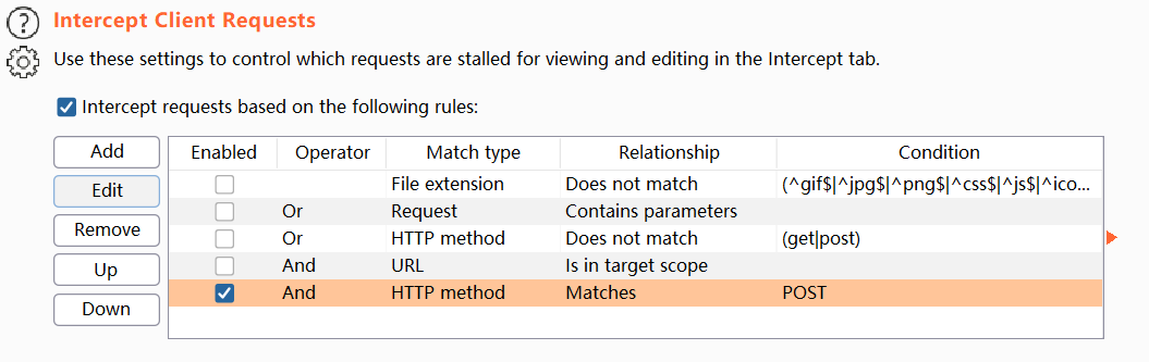 可以设置不拦截某些条件,例如不拦截请求地址后缀为jpg等,proxy会自动放行此数据包