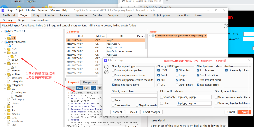 抓取流量后,本模块起到一个辅助的作用,可以观察捕获的页面内的链接等