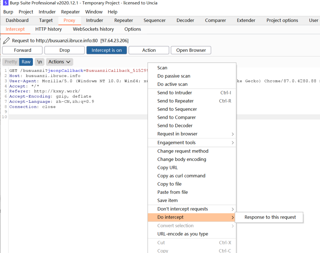 拦截当前数据包的 返回包,可以进行伪造验证等操作,在之后的渗透中会使用到