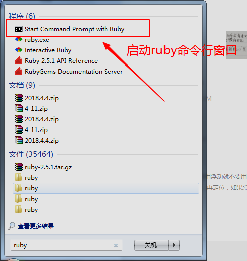 2. 安装完成打开 ruby命令行,或者把ruby添加到环境变量中