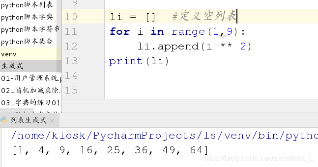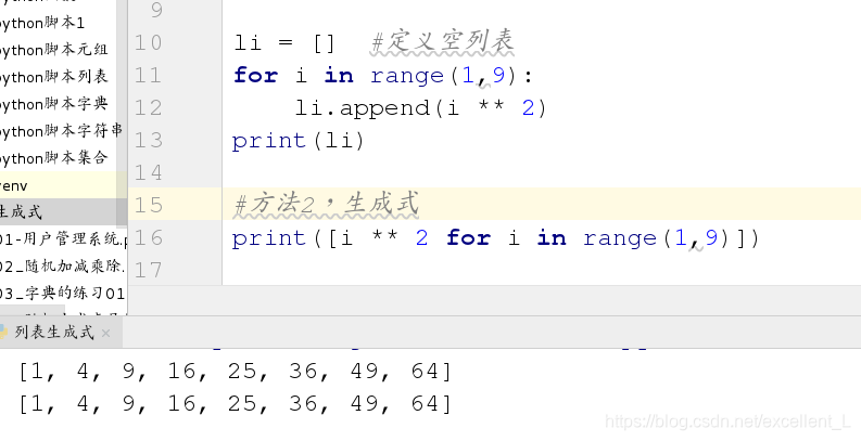 一、生成一个列表,列表元素分别为[1**2,2**2,3**2,...n**2]