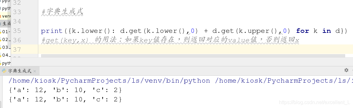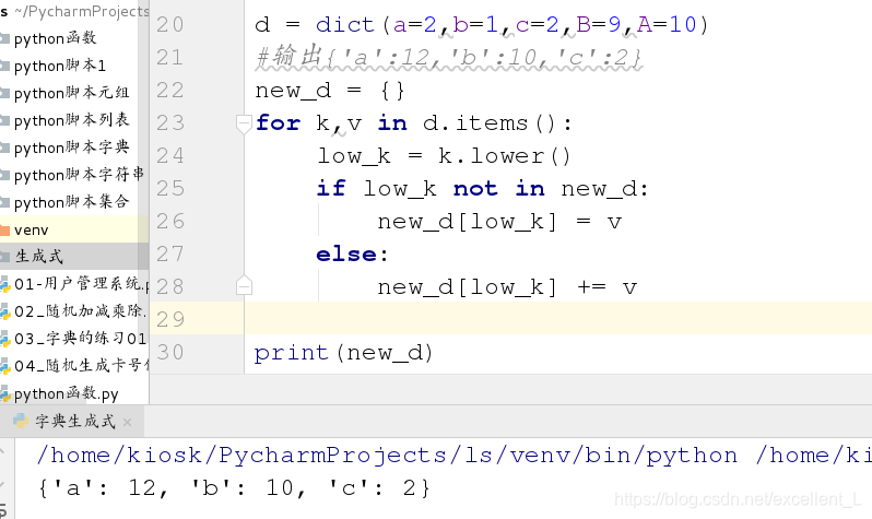 输出{‘a’:12,‘b’:10,‘c’:2}