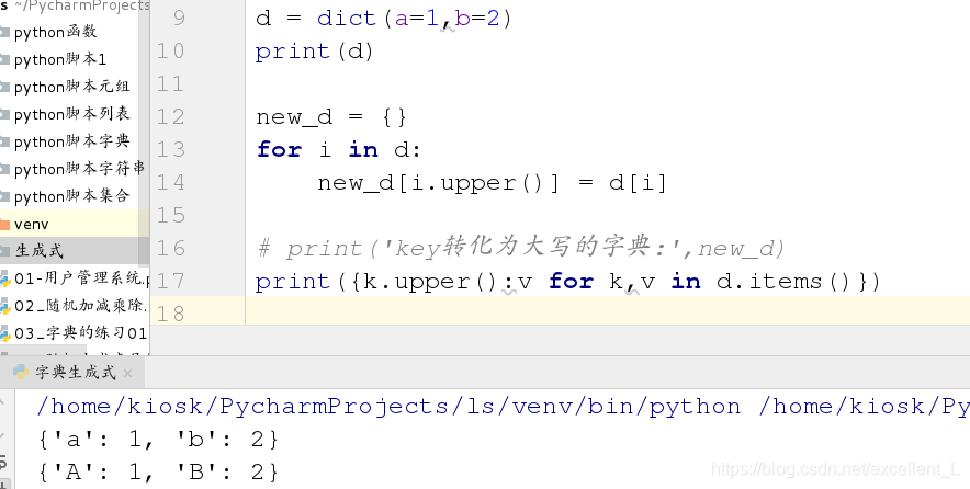 d = dict(a=2,b=1,c=2,B=9,A=10)