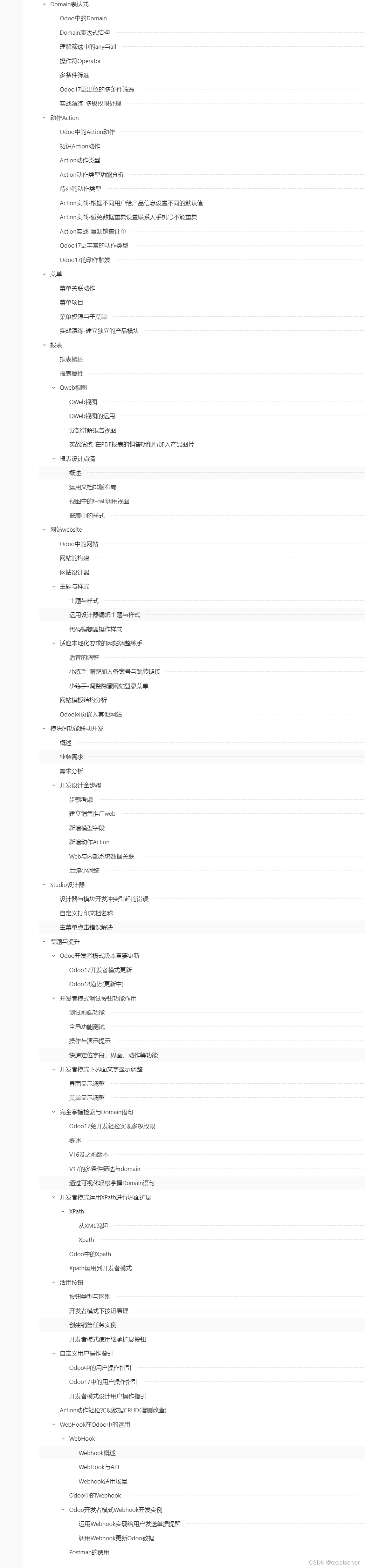 《Odoo开发者模式必知必会》全面介绍Odoo低代码开发设计的方法,让不熟悉Odoo开发的朋友,让对编程不了解的朋友能快速上手Odoo二次开发,调整Odoo的功能或界面以满足特定需求。