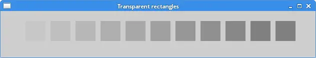QBrush类定义了QPainter绘制的形状的填充模式。drawRect方法绘制一个矩形。它在指定的x,y点处绘制一个左上角为起点的矩形,并给定宽度和高度。我们使用十六进制表示法指定颜色值。