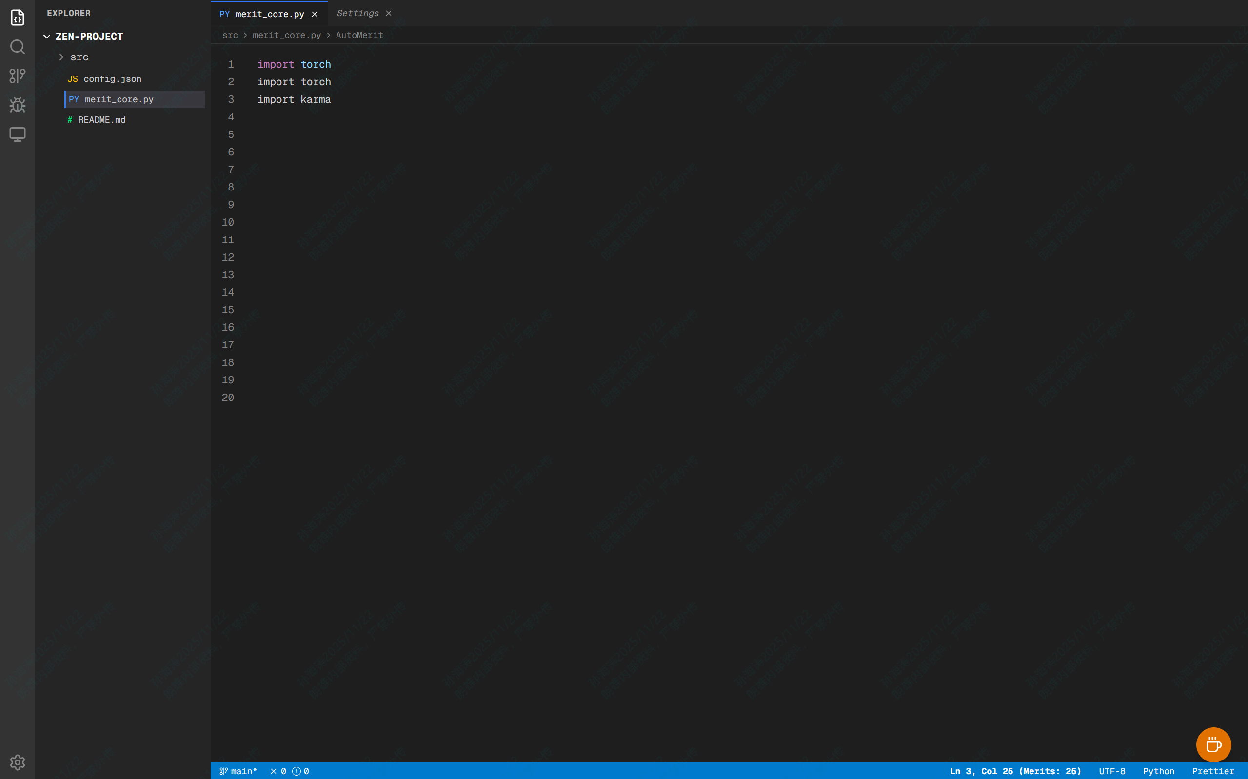 于是,这周末我开发了一款**“VS Code 禅模式(Zen Mode)”**应用。 它的逻辑很荒诞但很解压: 无论你在键盘上敲得多烂,屏幕上永远流淌着完美的算法代码;伴随着每一次敲击,还有清脆的木鱼声和“功德+1”的反馈。
