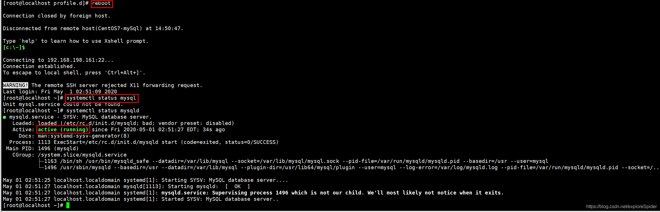 然而,服务器重启后,悲剧发生,创建好的文件夹又被删掉了,mysql开机启动失败