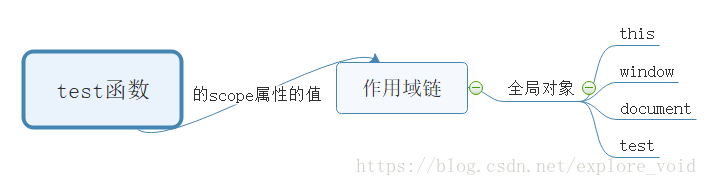 test();当函数被创建时,作用域链的第一个节点就有了,即全局对象,该对象包含诸如this,window,document等全局作用域中的变量。